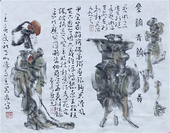 4、文人画。包括诗、书、画、印四者并举,以此来提高自创的新汉画的艺术品质、品位、品味。