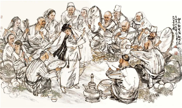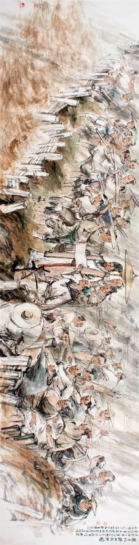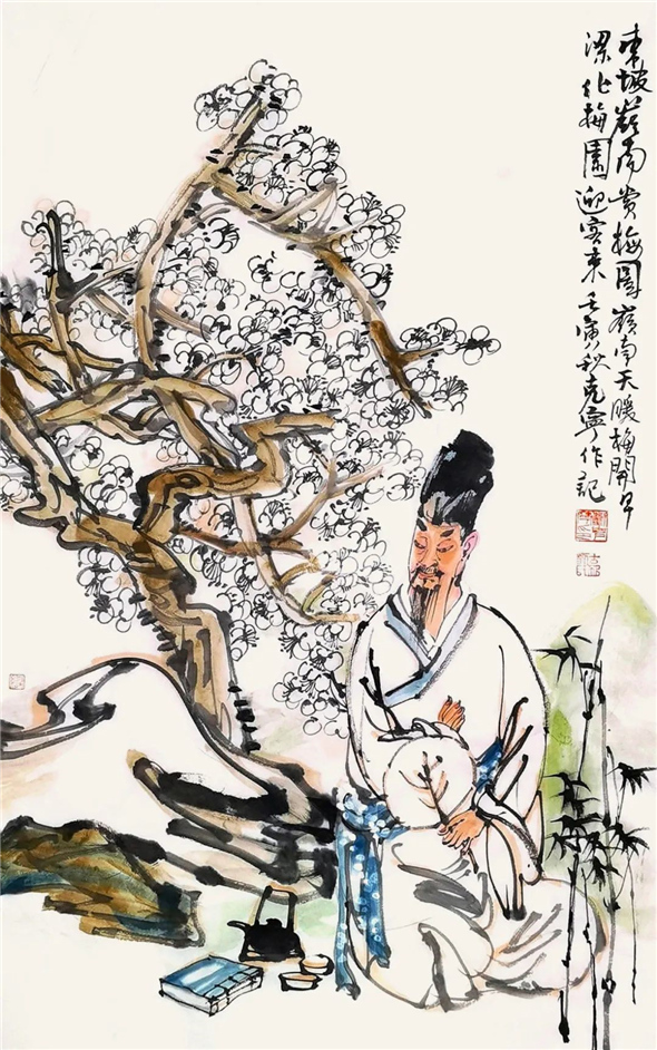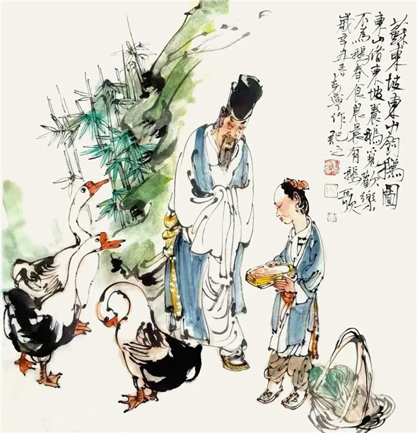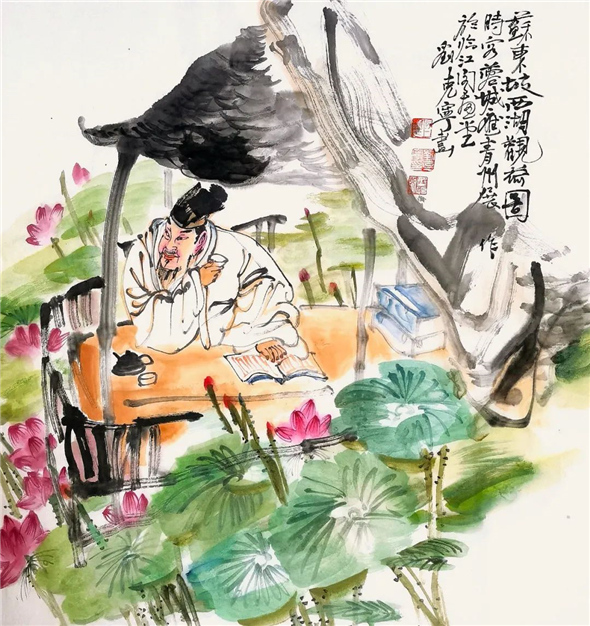 和苏东坡文化结缘对刘克宁来说也是很久远的事了,儿时的刘克宁和父母生活在成都,从父母的口中己听到过司马光,苏学士之类的名子和故事,小时跟父亲学书法,父亲一手漂亮敦厚的苏体书法让刘克宁入迷,至今刘克宁仍感觉到未及父?书法之功力。日后随着成长和工作的变迁刘克宁几乎沿着东坡足迹走过来。从川蜀到苏徐,从齐鲁到?南,刘克宁可谓是生活跨度极大的一位画家了,一路走来,饱饮西漠风沙,又??南春雨,总党得有一种魂牵梦绕的身影伴随着引领着…,那就是宋代先贤苏东坡。刘克宁被这位先贤达人所折服:他的豁达,才华,豪情,诗文,亲民,质朴所感染,?着年岁增长,阅历之丰富,他更感到苏东坡精神之可贵,更感到苏轼亲民为民的纯真情怀在现实中更加可贵,他决心用手中画?与这位先贤对话,用纯朴心怀去问墨先贤,用自己的认知去描述先贤,去塑告自己心中的苏东坡,去发扬光大苏东坡的豪放纯真,质朴善良,无私为民的精神。因为刘克宁知道苏轼的这种对社会的责任心,对百姓无贫贱心,对仕宦无欲求心在今天多么需要的,有着普遍的现实价值。我们研究先贤,继承传统,友扬优秀文化也是画家的文化责任。一个画家的文化格局是决定画家发展的空间的重要因素。学习和表现苏东坡文化成为刘克宁的重要的主题选择。