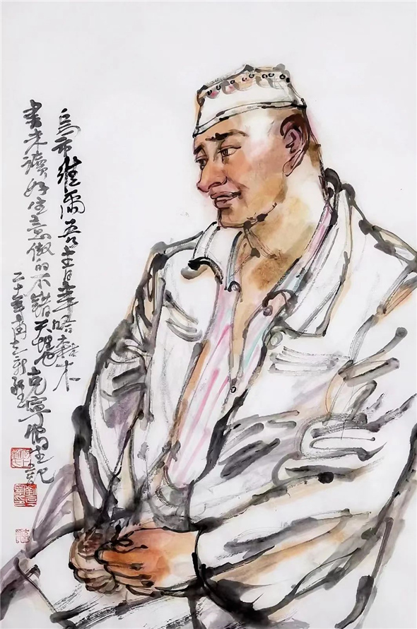 刘克宁在新疆前前后后近二十年。他从学校校到工作,到建立家庭,走上艺术之路都是在这片士土地完成的。至今每每回忆起他说新疆是第二故乡,这里存在着说不清的成长记?。从知青到大学,从文化馆干部到电影学校政工教师,从报社期刊记者到专业美?编辑,使他从学生到画家完成了初步成长之路。刘克宁不怕苦累,勤奋好学,注重写生和创作素材的收集。不论是去文艺辅导还是牧区写生采风,从来都是速写本不离手,尤其是看到黄胄先生画速写后更感觉到速写的重要,在新疆期间除了完成多份文学期刊文学作品插图和编辑设计外还常有速写写生见诸於报端,这期他积累速写作品数百幅,足足好多册。新疆天山南北生活着几十个民族,北疆的哈?克和回族,南疆的维吾尔,塔吉克族都是刘克宁?下表现的对象。他深入牧区,农村,从草原到农舍都留下了他的足迹,为了写生他还学习了简单的民族语言,日久生情,他对这片读地产生挚爱,所以他的西部人物作品一出现就在画坛产生很大影响。如在中国美协画展中获金奖的《巴扎图》,写意中国画大展中获银奖的《欢乐新疆》和文化部展获银奖的《新疆好》,和中国美协21世纪澳大利亚展获铜奖的组画《新疆风情》等等,都是来自这片土地的题材。正如著名理论家孙克所说:刘克宁?下维吾尔人哈?克人是鲜活的,有生命力的。因为他了解他们。提?一画就象。不是一些走马观花,去一趟新疆猎奇性的写画。这些创作和成就使刘克宁深深地懂得一个道理:创作来源于生活,作品要有情感。