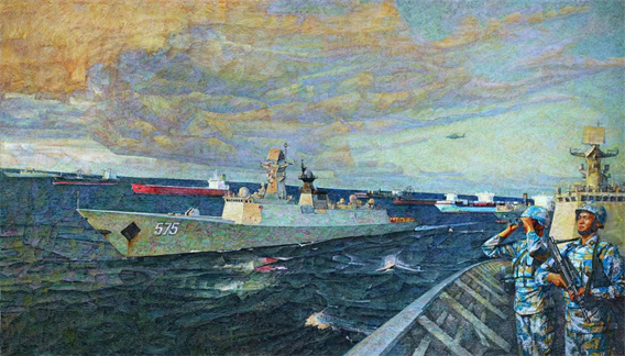 《中国海军亚丁湾护航》〡油画〡兰力斌