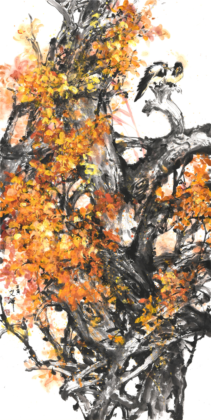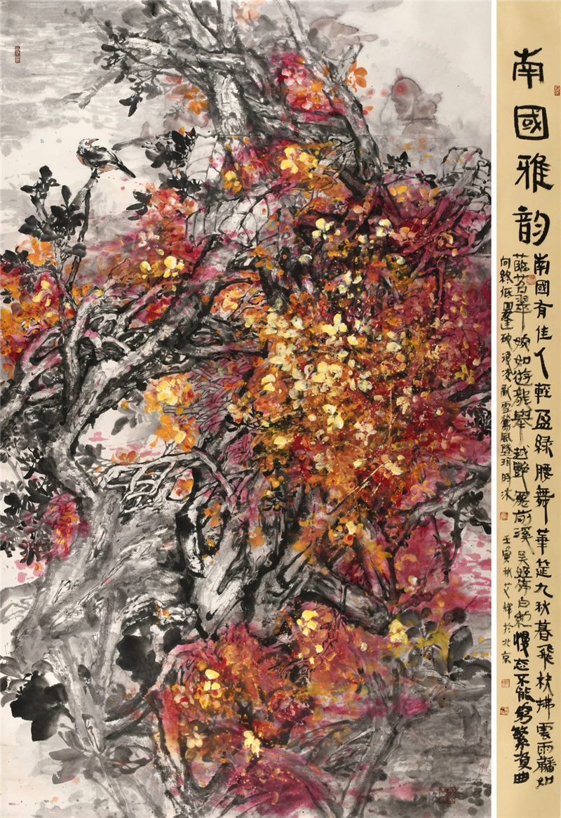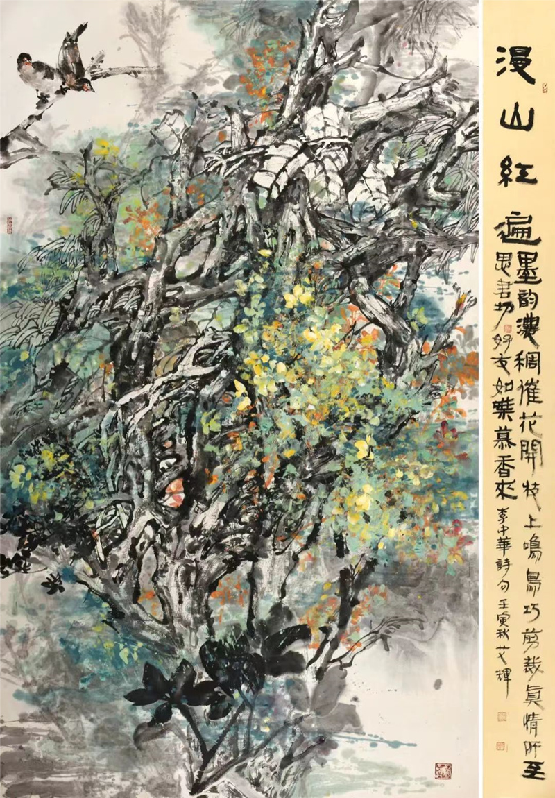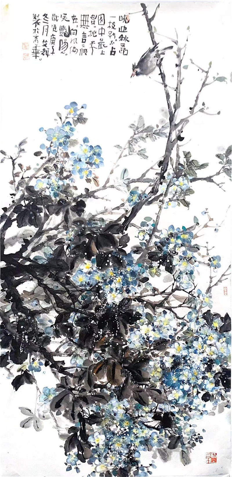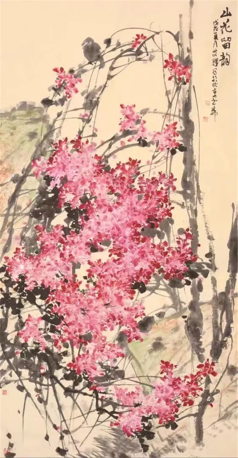中国人的审美意识是一种大美的意象情怀,这在秦汉时期出土的大量文物中或先贤的论述里都能悟出和读到。大美的审美意识,决定艺术追求的趣味和艺术呈现的风貌,画家艾辉出生于黑龙江鹤岗,目前居于北京,北方的厚重对她的作品产生着作用,这些都深得其感。艾辉在大写意花鸟画研习中,吸收一些小写意用笔的细微,当然是她在杭州学习深造,受其影响的结果。这种南风韵味给她的花鸟画增添了动人之处,使作品丰富受看。同是她观察生活,写生积累,体会人生的一种真实表达。