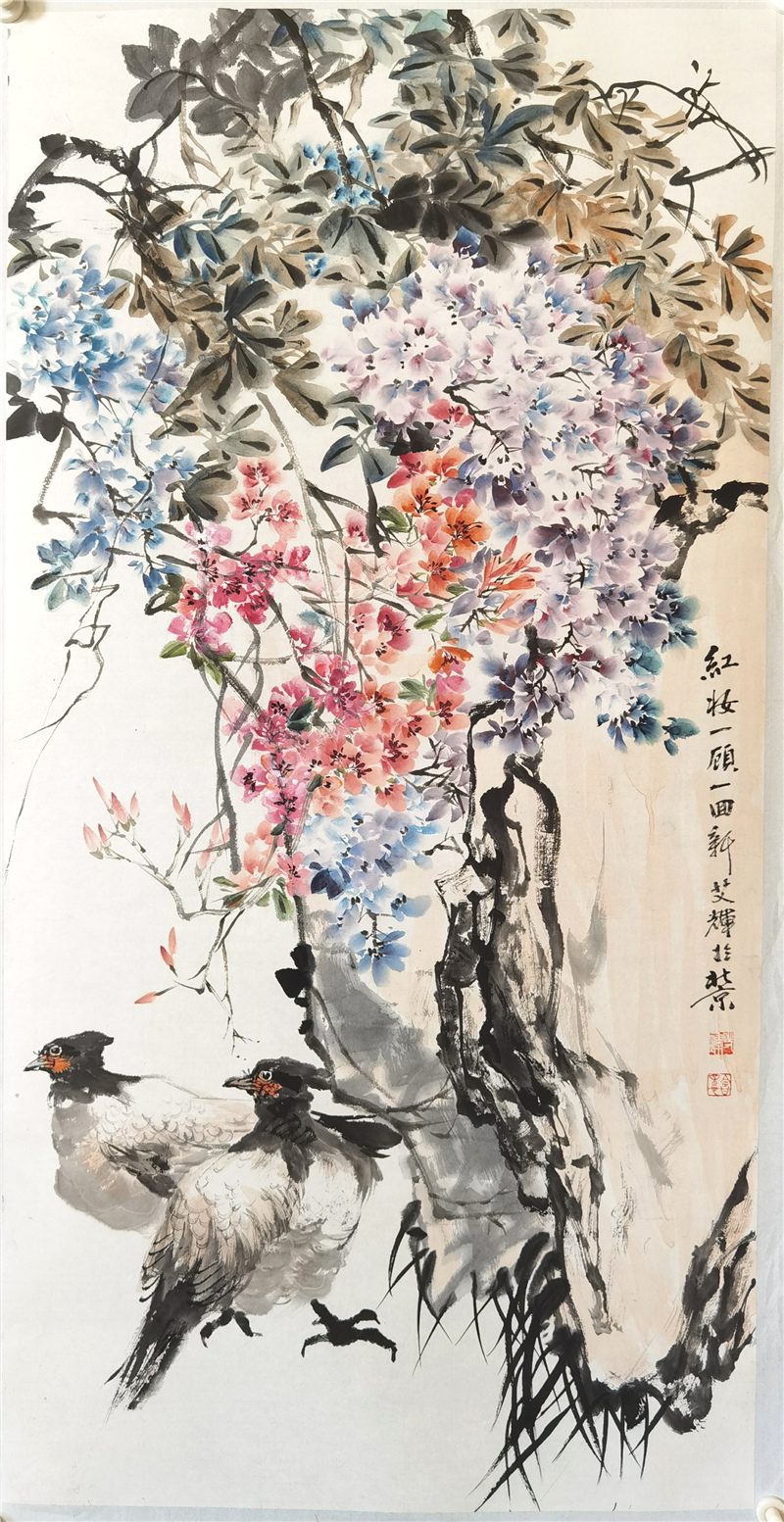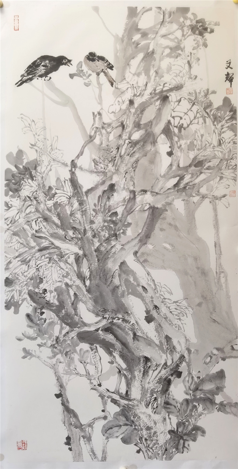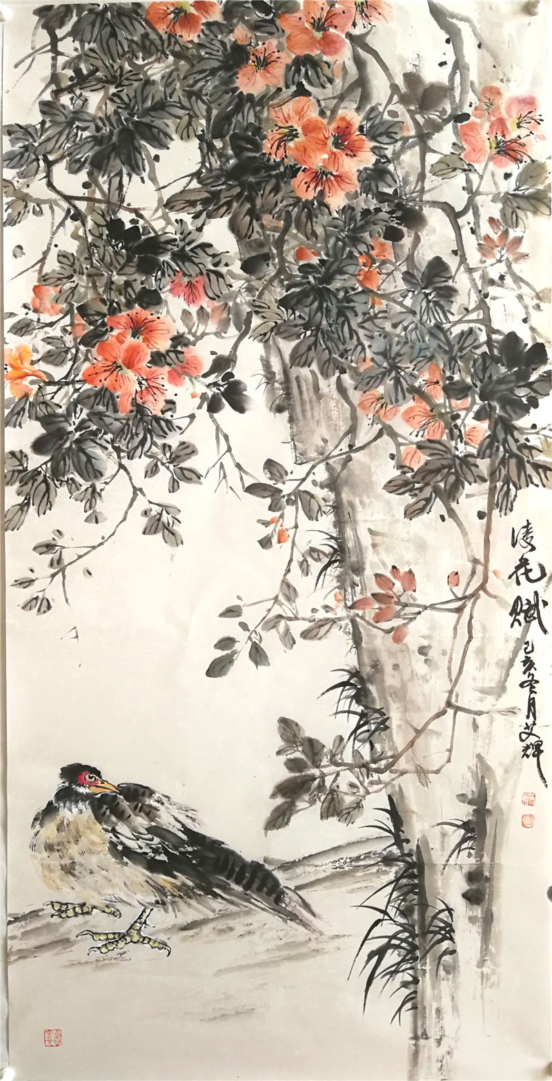 在近十年的写意花鸟画学习中,艾辉边学研,边参选全国性展览,多次入选获奖,在如林的画界难得的加入了中国美术家协会。这些成果的取得,首先取决于她对花鸟画的喜爱与坚持,特别是在困境中,最能体现其一个人的心志以及家人的理解支持,压力之下使她更加勤奋,她常是拿来大卷大卷的画让老师提意见,并经得起批评,这是很难得也是很可贵的,这背后付出的艰辛,包括种种难点的克服,是每个学画的人都要经历的,而艾辉走了出来,并且越来越受到艺术界的关注,我希望她取得更大成绩,再奔艺术之高难,苦心研创,渐成画风,为中国花鸟画创新贡献自己的智慧。