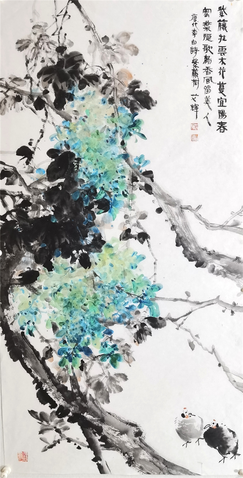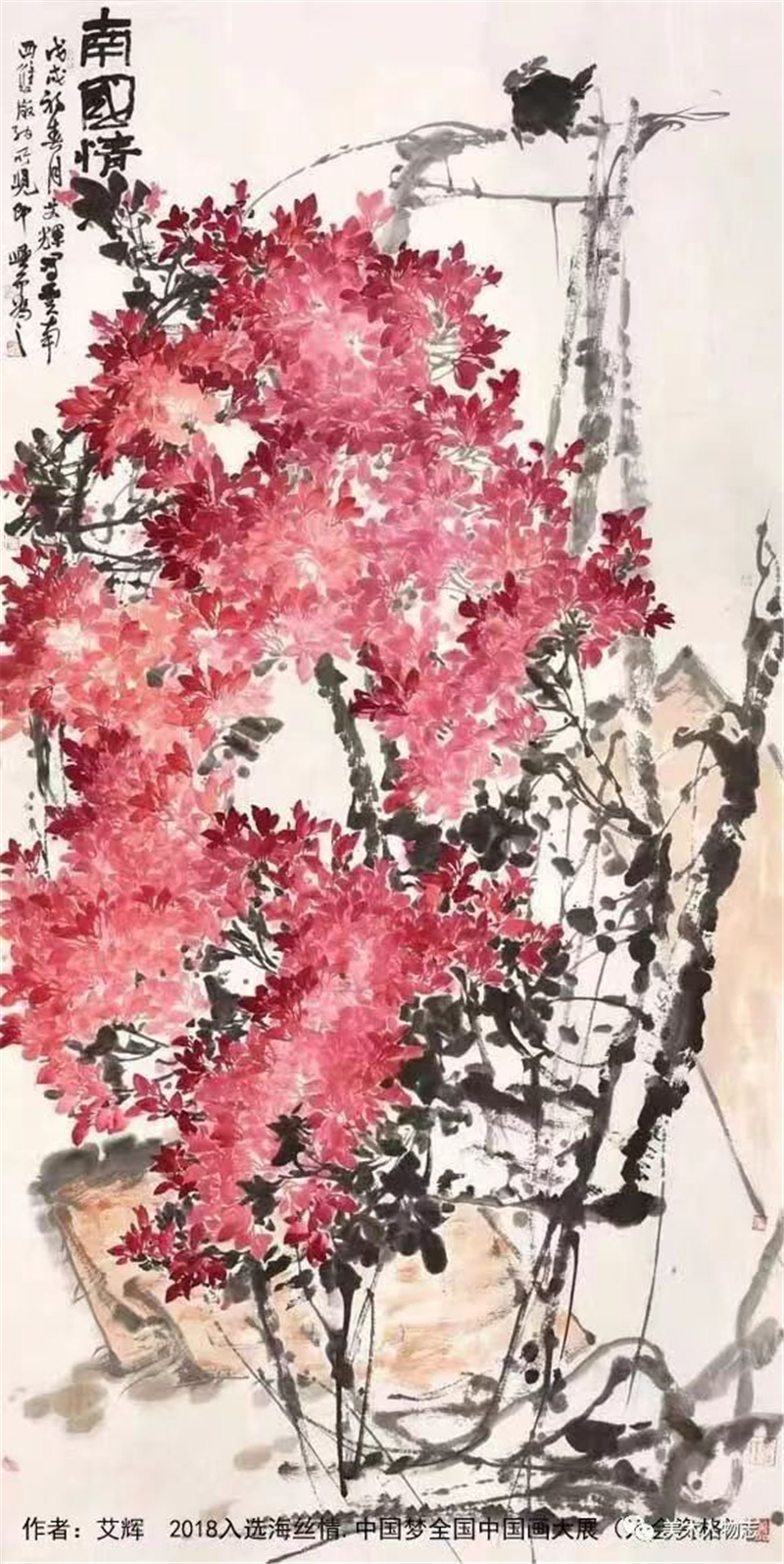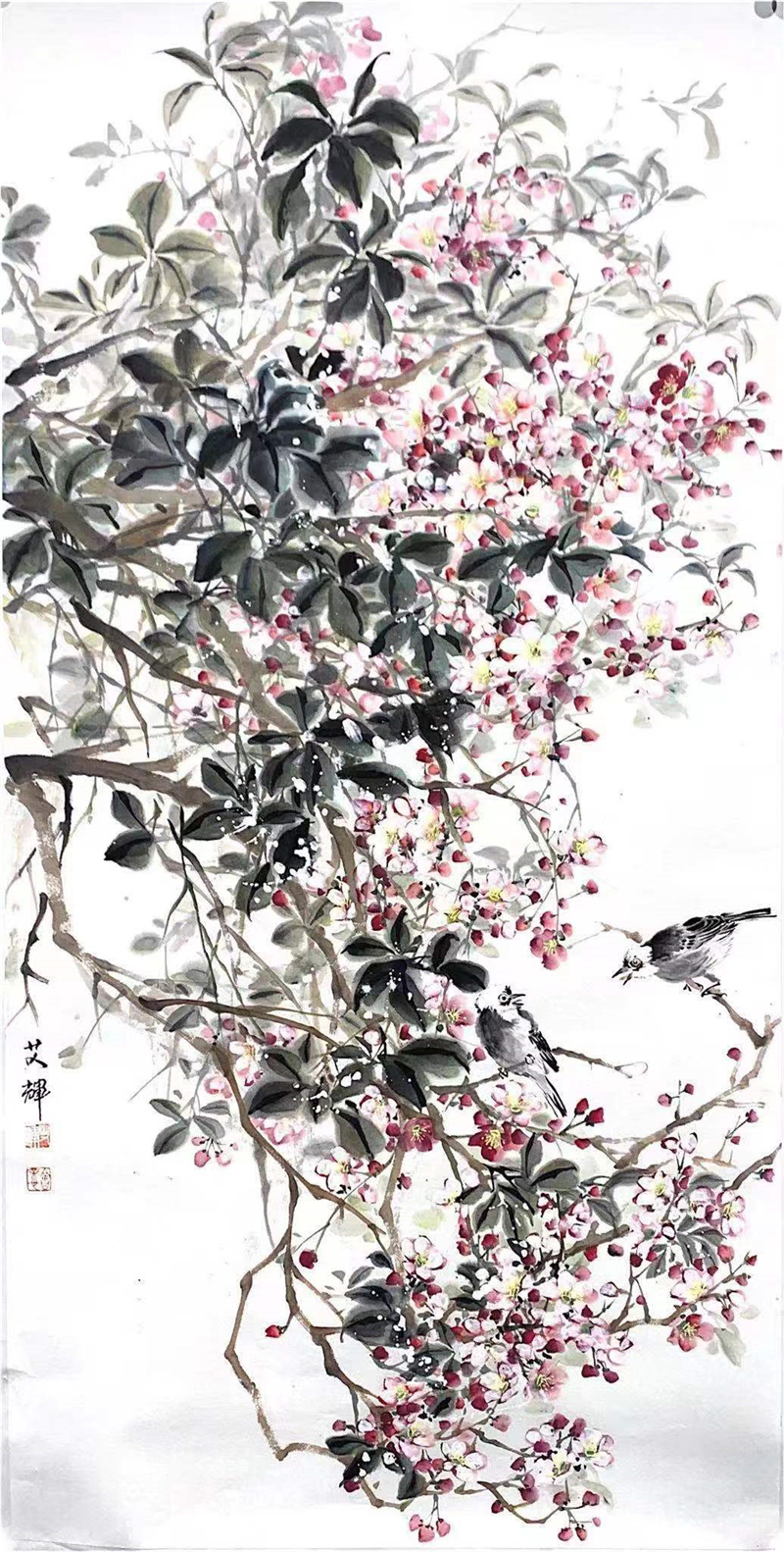 在近十年的写意花鸟画学习中,艾辉边学研,边参选全国性展览,多次入选获奖,在如林的画界难得的加入了中国美术家协会。这些成果的取得,首先取决于她对花鸟画的喜爱与坚持,特别是在困境中,最能体现其一个人的心志以及家人的理解支持,压力之下使她更加勤奋,她常是拿来大卷大卷的画让老师提意见,并经得起批评,这是很难得也是很可贵的,这背后付出的艰辛,包括种种难点的克服,是每个学画的人都要经历的,而艾辉走了出来,并且越来越受到艺术界的关注,我希望她取得更大成绩,再奔艺术之高难,苦心研创,渐成画风,为中国花鸟画创新贡献自己的智慧。