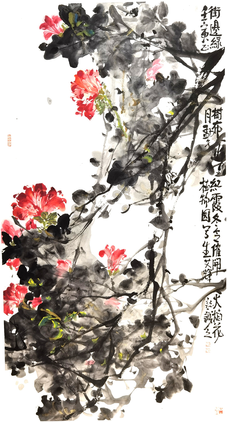 2018作品《不尽赊红染余霞》入围"南粤之光"全国中国画美术大展。
