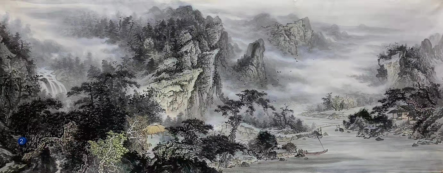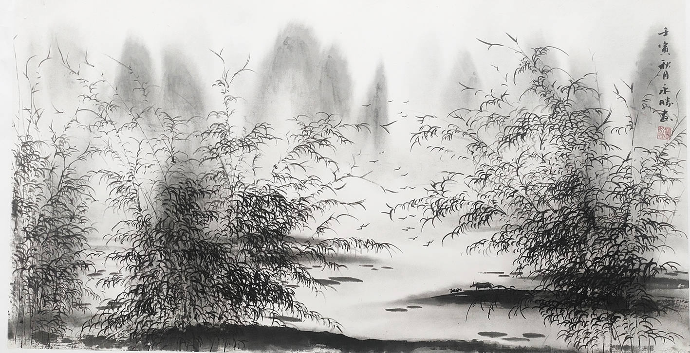 邓平对艺术始终如一虔诚对待,将字画融入了中国五千年的历史和文化,他的画作构图精巧、气势恢宏,他把中国淡墨山水画推至顶峰。观邓林老师的作品,每位观赏者都能在画中寻一偶清静之地,安闲片刻悠然时光,驾一叶轻舟,顺流而上,穿行在自然风光中,忘却所有的一切,只陶醉在眼前的山山水水,让那些清流洗濯身心,涤荡灵魂。