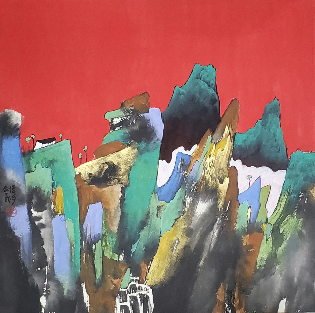 武剑飞的“写意重彩”画法为中国画坛带来了深远的影响和重要的学术价值。他不仅在技法上进行了大胆的创新,还通过思想性的表达为中国山水画注入了新的活力与深度,作为“积彩法”的创始者,武剑飞巧妙地将中国传统水墨画与现代重彩技法结合,开创了一种全新的表达方式,这种技法不但保留了传统水墨画中的意境与韵味,更增强了色彩的表现力,使得中国山水画在视觉上更具张力与层次感,达到了新的艺术高度。