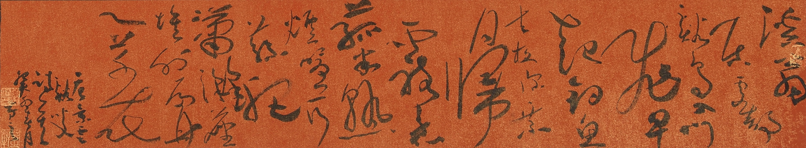 她的草书作品尤具特色,墨色枯湿并用,使字迹在浓淡之间形成丰富的层次感。某些作品的草书呈现出金石韵味,笔画如刀刻般苍劲,增强了作品的视觉冲击力。在笔法上,她并不拘泥于传统帖学体系,而是结合篆刻的刀法,使书写呈现出更加浑厚的质感。