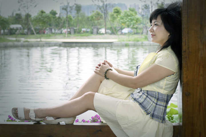 水的表现尤为独特,她往往通过简练的笔法勾勒波光粼粼的水面,或是以大片留白方式呈现静谧的湖泊,使观者在空白处感受到水流的律动。树木的枝干则富有张力,以枯笔勾画轮廓,辅以湿墨点叶,形成“春风柳色”般的生动意象,使得画面不仅有传统文人画的静雅气韵,同时也展现出自然生生不息的活力。
