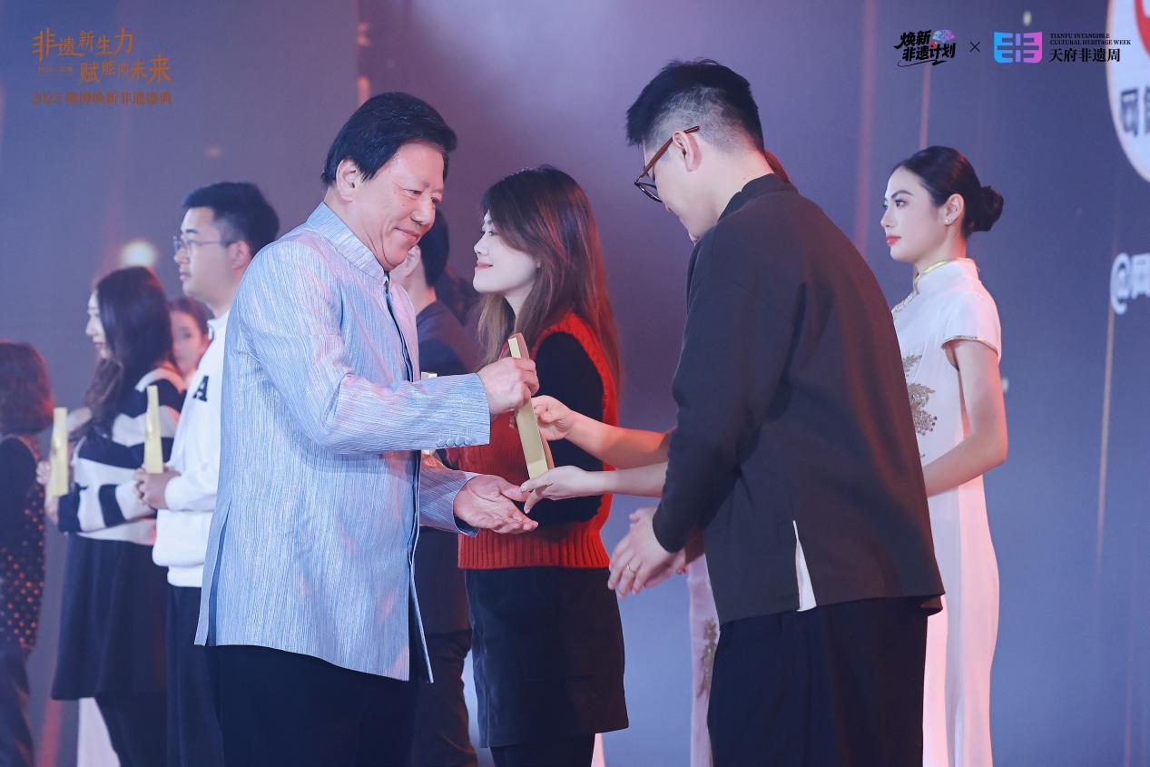 盛典现场颁发多项荣誉,向为非遗传承发展作出突出贡献的个人、项目、品牌与媒体致敬。其中,“年度匠心非遗传承人”“年度非遗在地新生典范项目”“年度焕新非遗创新贡献品牌”等荣誉的颁发尤为引人注目。