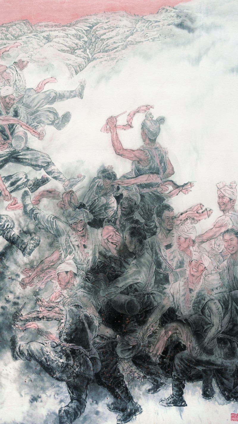 主题性中国画创作,始终是中国现当代美术发展的重要脉络。作为贯穿20世纪中国美术发展的核心主线之一,主题性创作诞生了一批具有里程碑意义的经典作品。上世纪五十年代,围绕中国历史博物馆、中国革命博物馆、中国人民革命军事博物馆等机构的陈列需求,全国范围内组织开展了大规模主题创作,涌现出李可染、叶浅予等艺术家创作的《新中国的诞生》、石鲁《转战陕北》等一批由国家主导的重大美术工程精品。近年来,在文化部、财政部共同推进的国家重大历史题材美术创作工程带动下,全国美术名家合力完成《远山——拉哈屯的父老乡亲》(冯远)、《我的英雄》(邬大勇)、《筑梦濠江》(赵本钧)、《湾区颂》(黄唯理等)等力作,在全国多地巡展,累计吸引数百万观众参观,社会反响十分显著。前几年中国中央电视总台播出的《美术经典中的党史》百幅作品,以经典美术为桥、以党史为魂,既是党史学习的创新课堂,也是主题性创作的价值标杆,实现了政治高度、艺术深度的统一。步入新时代,进一步深化中国画主题创作研究,激活其内在创新动能,已然成为繁荣社会主义文艺事业的必然要求。