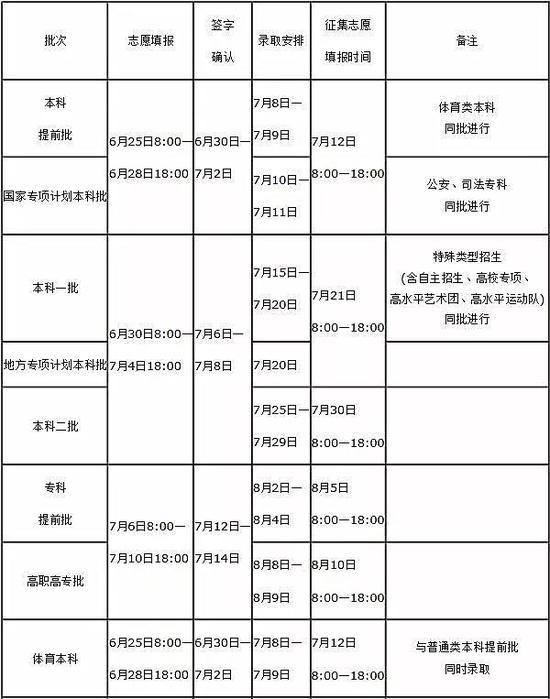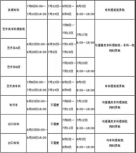 6月25日-28日:本科提前批、国家专项计划本科批、艺术本科提前批、艺术本科批