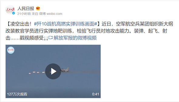 【凌空出击!#歼10战机高燃实弹训练画面#】近日,空军航空兵某团组织新大纲改装教官学员进行实弹地靶训练,检验飞行员对地攻击能力。装弹、起飞、射击……戳视频感受↓。