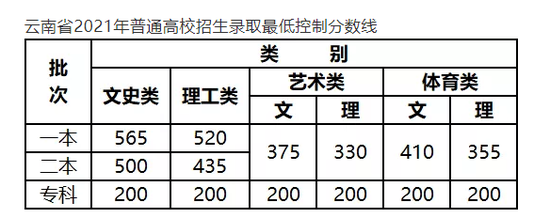 经省招生委员会研究决定,广东省2021年普通高校招生各批次录取最低分数线如下: