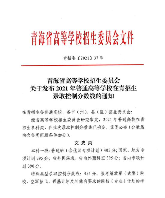 文化成绩控制分数线:历史学科类 456分,物理学科类 336分