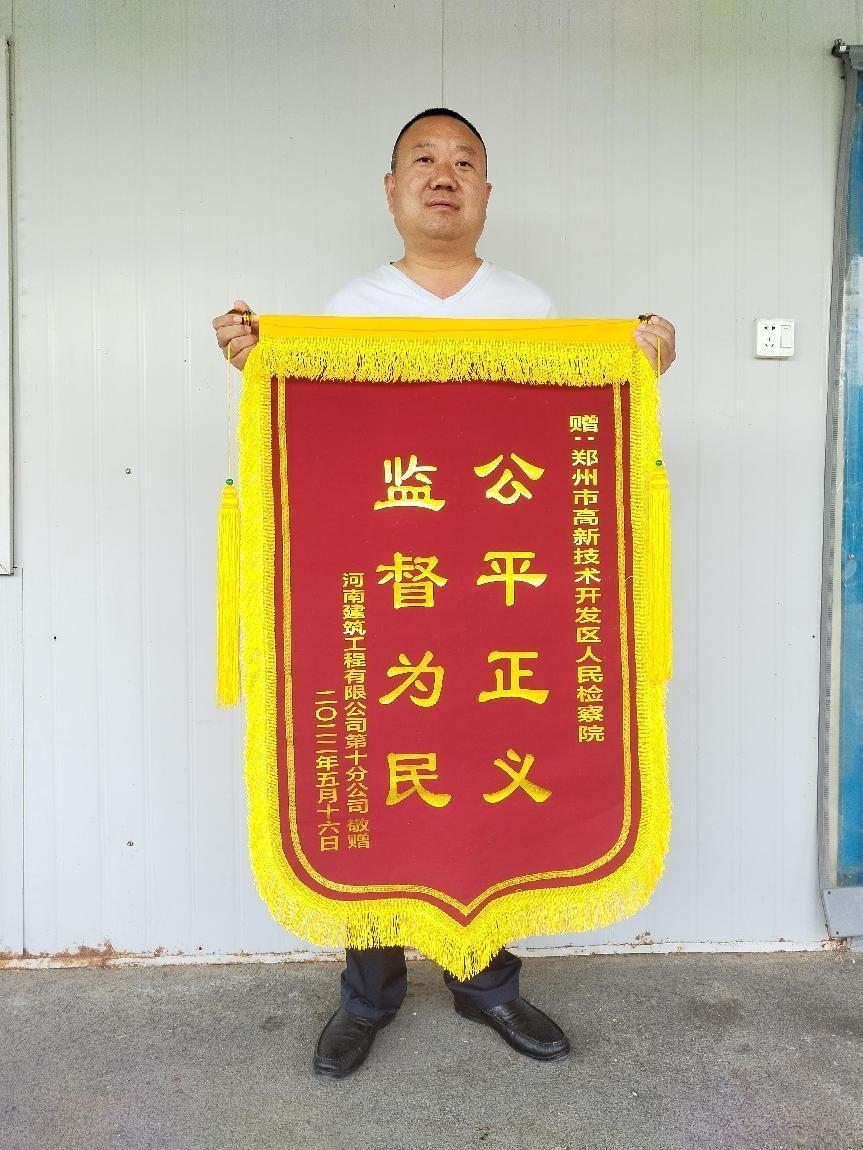 河南建筑工程有限公司第十分公司项目经理关庭所,近日给郑州高新技术开发区人民检察院寄送了一面感恩戴德的大锦旗,引起了知情群众的热议和媒体的关注。