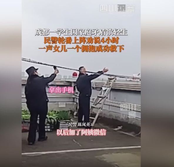 当天,成都的天空灰蒙蒙的,仿佛预示着即将发生的不幸。女孩独自站在高楼的天台上,泪水与寒风交织,她的眼神中充满了绝望与无助。家庭的矛盾像一座大山,压得她喘不过气来。接到报警后,成都的民警们迅速赶到现场,看到女孩站在天台上,身体微微颤抖,情况十分危急。